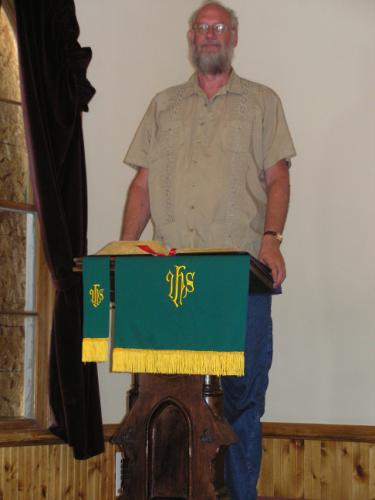 Steve at Sheldon Jackson church Published July 6, 2012 at 375 × 500 in Verse – “What to preach?” Steve Shoemaker at historic pulpit of Sheldon Jackson in CO.