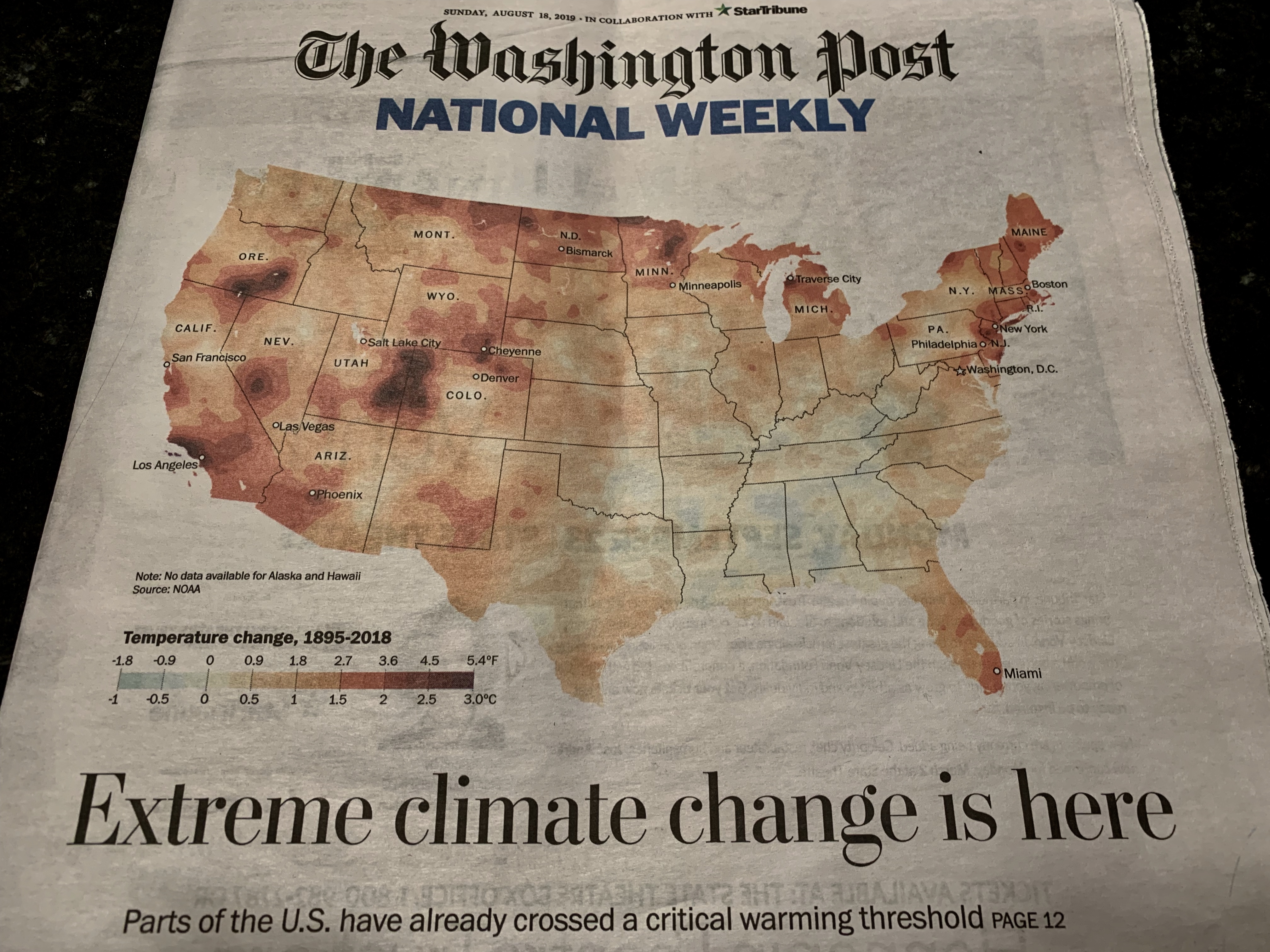 front page, Washington Post National Weekly in collaboration with Star Tribune, 8/18/19
