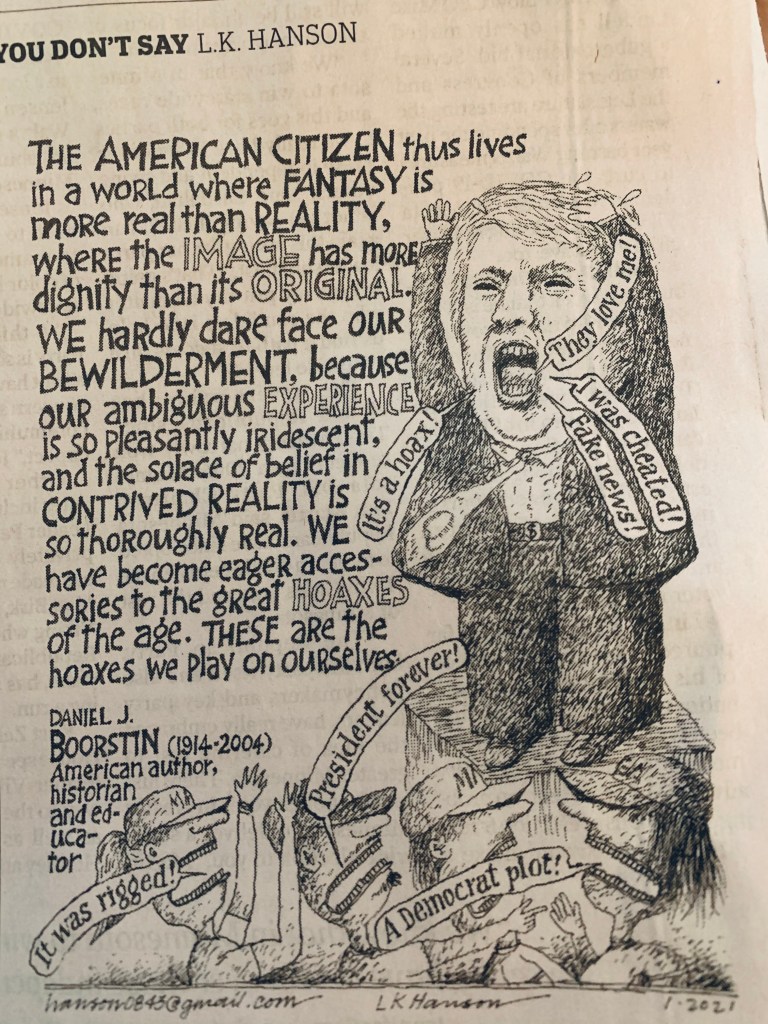 StarTribune cartoon quoting Daniel J. Boorstin (1914-2004), January 4, 2021